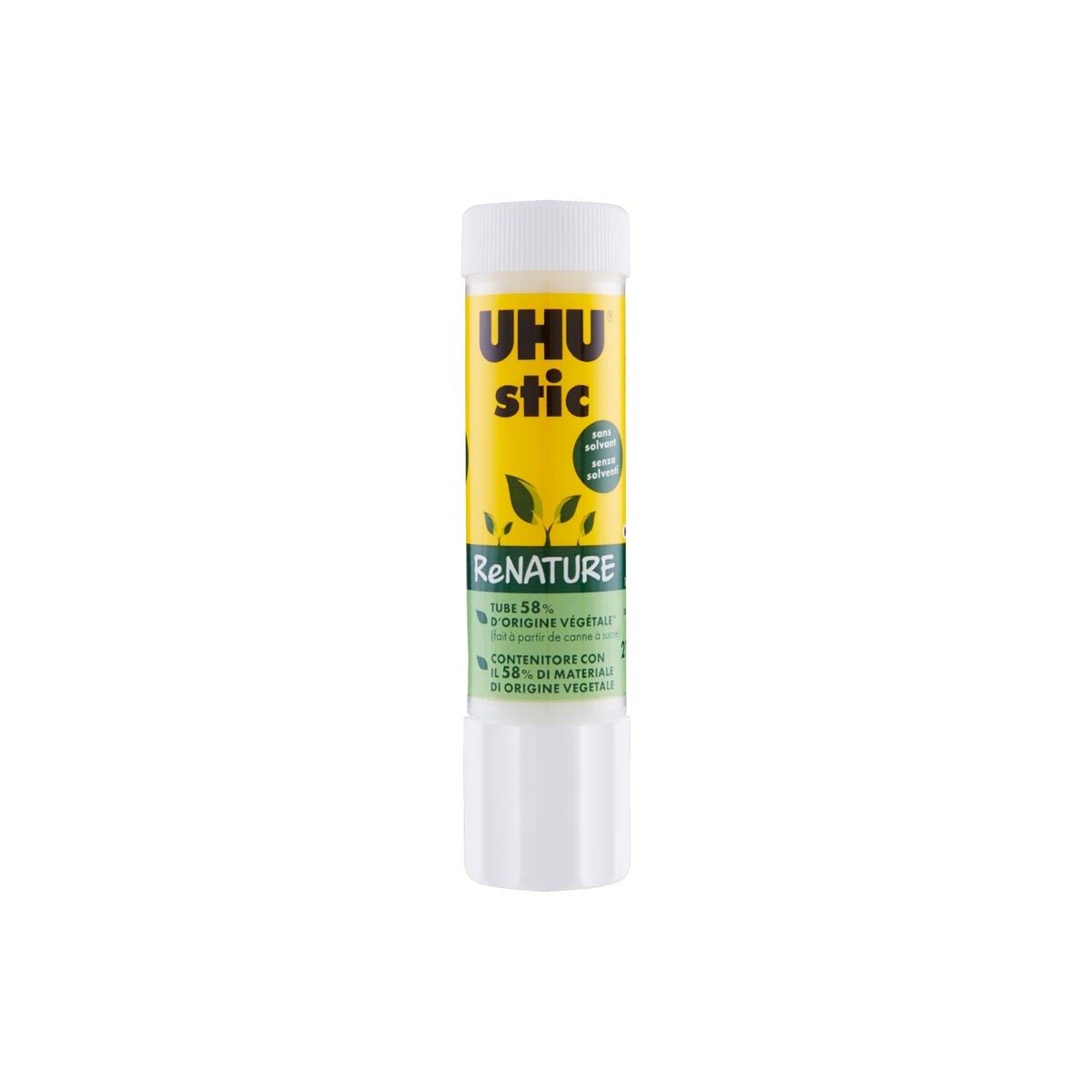 Questa colla in stick UHU® ReNATURE è composta per il 70% da materiali di origine naturale, non contiene solventi ed è riciclabile al 100% per ridurre al massimo l’impatto ambientale. ReNATURE ha un impatto ambientale minimo, grazie al contenitore composto per il 58% da materie prime di origine vegetale e alla formula composta per il 70% da materiali di origine naturale. Questa colla in stick è utile per incollare in modo pulito e rapido decorazioni e album, o per un uso generico in casa, in ufficio o a scuola. Il pratico cappuccio avvitabile impedisce alla colla di seccare, prolungando la durata del prodotto. Incolla immediatamente carta, cartone, etichette, foto e molto altro ancora. La formula priva di solventi si lava via facilmente con acqua fredda, pertanto può essere utilizzata in sicurezza anche dai bambini.La formula contiene il 70% di materiali di origine naturale, Il contenitore è composto per il 58% da materie prime di origine vegetale, il cappuccio a vite per evitare che si secchi. Senza solventi